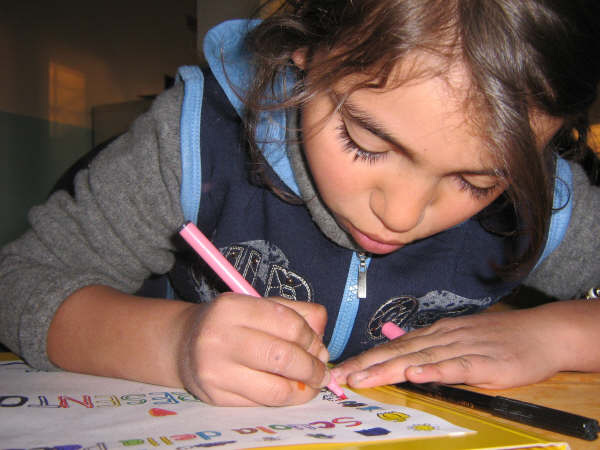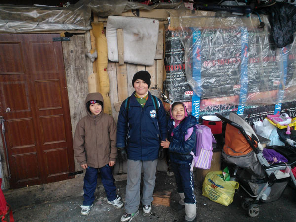 Bambini rom romeni a Milano (Italia). Vivere in una baraccopoli può rendere difficile frequentare con regolarità e successo la scuola.