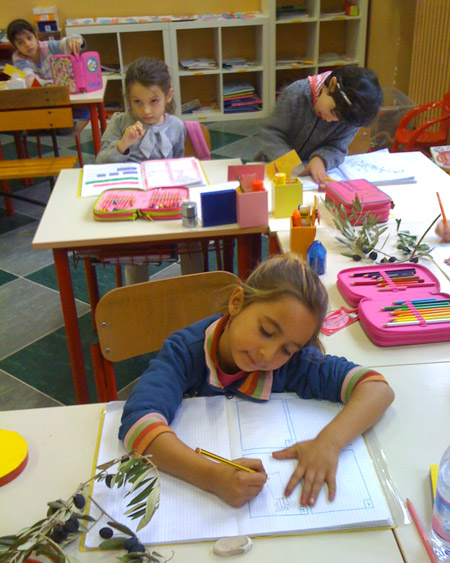 “Mi piace la mia scuola” Disegni dei bambini rom di Milano, Italia - dalla mostra “‘Io vivo al campo’. Storie di bambini rom a Milano” © Comunità di Sant’Egidio. |
